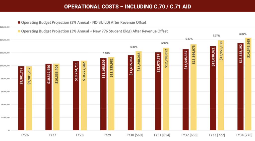 Old Colony project organizers have since updated the operating budget estimate to be $11.3 million in fiscal year 2029, according to presentation materials published for November. Despite an increase in students, the operating budget estimate does not appear to substantially increase compared to if the new building was not built.